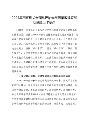 2024年市直机关全面从严治党党风廉政建设和反腐败工作要点.doc