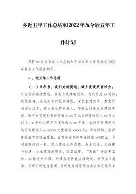 乡近五年工作总结和2022年及今后五年工作计划.docx