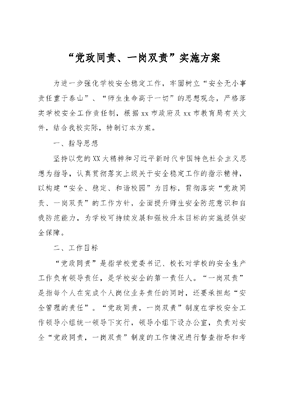 “党政同责、一岗双责”实施方案.docx