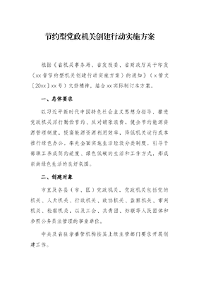 节约型党政机关创建行动实施方案.docx