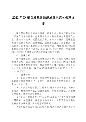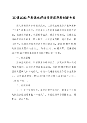 2023年XX镇在村集体经济发展示范村创建方案.docx
