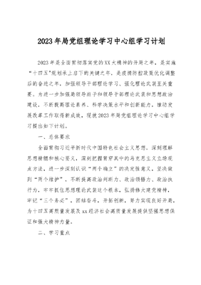 2023年局党组理论学习中心组学习计划.docx