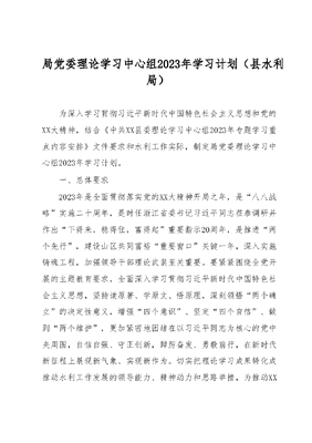 局党委理论学习中心组2023年学习计划县水利局.docx
