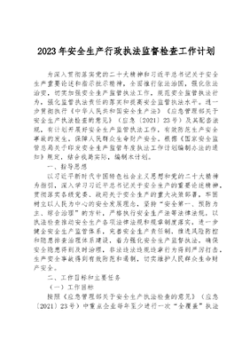 2023年安全生产行政执法监督检查工作计划.docx
