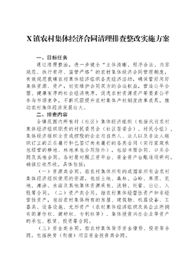 X镇农村集体经济合同清理排查整改实施方案.docx