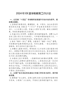 2024年XX县学前教育工作计划.docx
