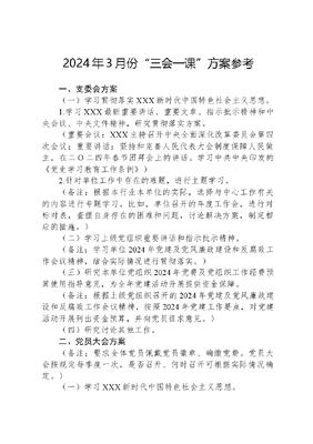 2024年3月份“三会一课”方案参考.docx