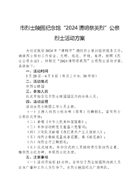 市烈士陵园纪念馆“2024清明祭英烈”公祭烈士活动方案.docx