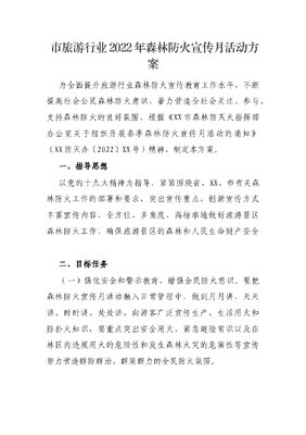 市旅游行业2022年森林防火宣传月活动方案.docx