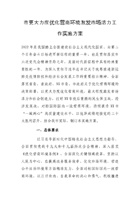 市更大力度优化营商环境激发市场活力工作实施方案.docx