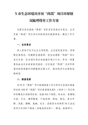 X市生态环境局开展“两高”项目环保情况梳理排查工作方案.docx