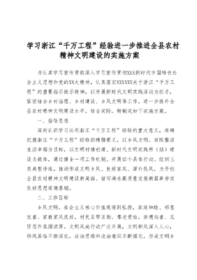 学习浙江“千万工程”经验进一步推进全县农村精神文明建设的实施方案.docx