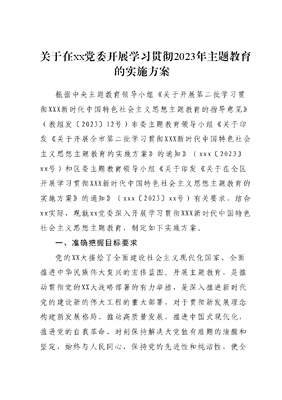 xx党委深入开展学习贯彻2023年主题教育的实施方案.docx