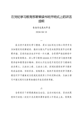 党纪学习教育∣方案计划:在党纪学习教育部署暨读书班开班式上的讲话提纲——青海省发展改革委.docx
