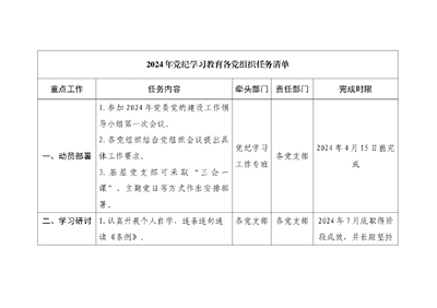 党组织2024年党纪学习教育党组织任务清单表.doc