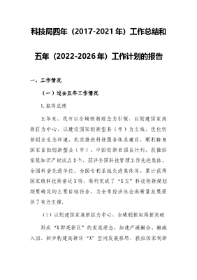 科技局四年(2017-2021年)工作总结和五年(2022-2026年)工作计划的报告.docx