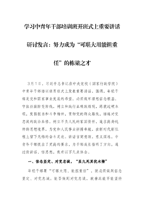 学习中青年干部培训班开班式上重要讲话研讨发言:努力成为“可堪大用能担重任”的栋梁之才.docx