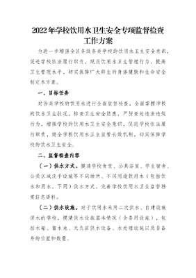 2022年学校饮用水卫生安全专项监督检查工作方案.docx