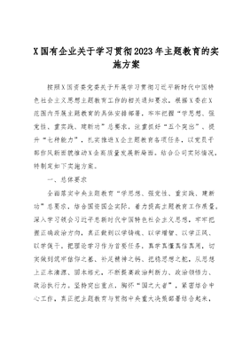 X国有企业关于学习贯彻2023年主题教育的实施方案.docx