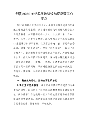 乡镇2022年党风廉政建设和反腐败工作要点.docx
