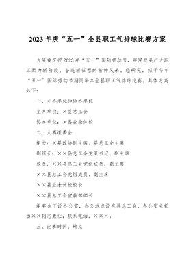 2023年庆“五一”全县职工气排球比赛方案.docx