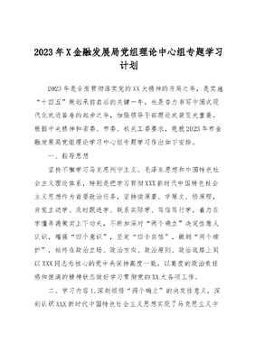 2023年X金融发展局党组理论中心组专题学习计划.docx