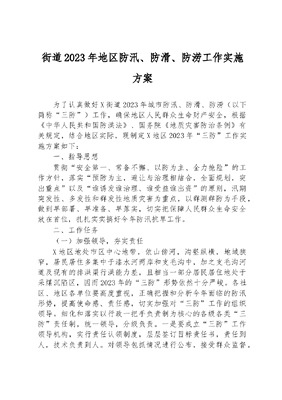 街道2023年地区防汛、防滑、防涝工作实施方案.docx