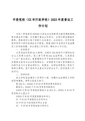 市委党校(XX市行政学校)2023年度普法工作计划.docx