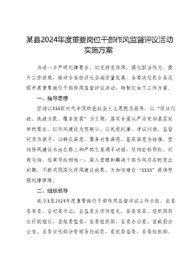 某县2024年度重要岗位干部作风监督评议活动实施方案.docx