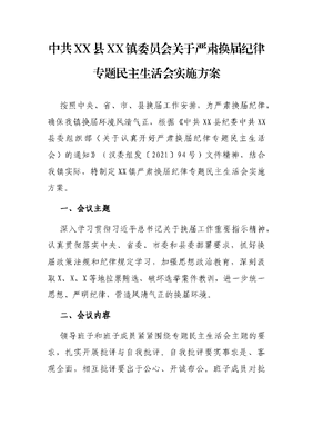 中共XX县XX镇委员会关于严肃换届纪律专题民主生活会实施方案.docx
