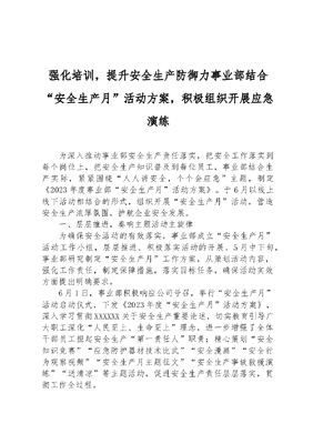 强化培训,提升安全生产防御力事业部结合“安全生产月”活动方案,积极组织开展应急演练.docx