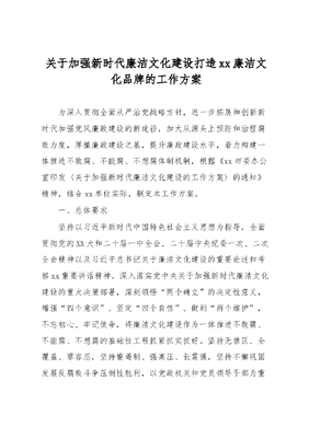 关于加强新时代廉洁文化建设打造xx廉洁文化品牌的工作方案.docx