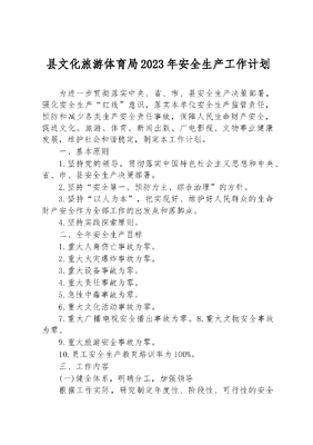 县文化旅游体育局2023年安全生产工作计划.docx