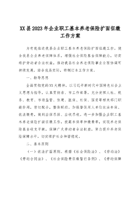 XX县2023年企业职工基本养老保险扩面征缴工作方案.docx