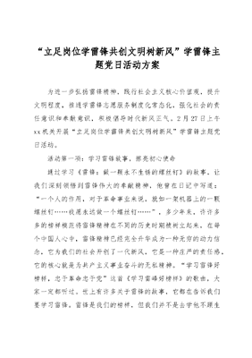 “立足岗位学雷锋 共创文明树新风”学雷锋主题党日活动方案.docx