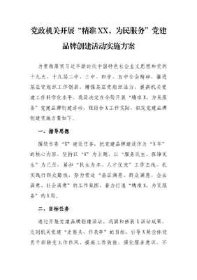 党政机关开展“精准XX,为民服务”党建品牌创建活动实施方案.docx
