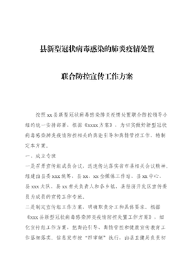 县新型冠状病毒感染的肺炎疫情处置联合防控宣传工作方案.docx