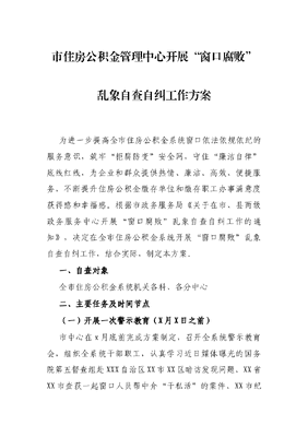 市住房公积金管理中心开展“窗口腐败”乱象自查自纠工作方案.docx