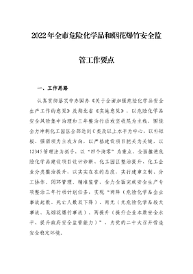 2022年全市危险化学品和烟花爆竹安全监管工作要点.docx