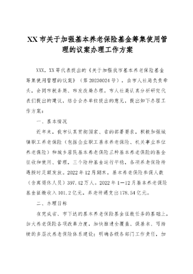 XX市关于加强基本养老保险基金筹集使用管理的议案办理工作方案.docx