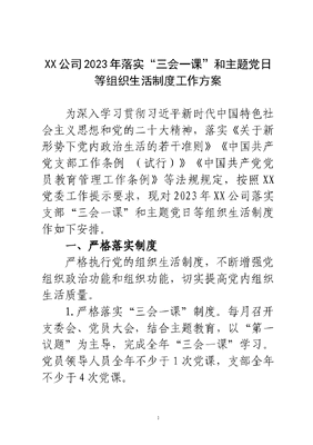 2023年落实“三会一课”和主题党日等组织生活制度工作方案.docx