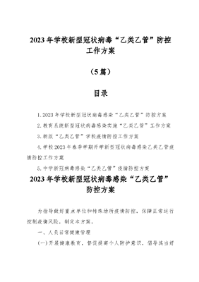 (5篇)2023年学校新型冠状病毒“乙类乙管”防控工作方案.docx