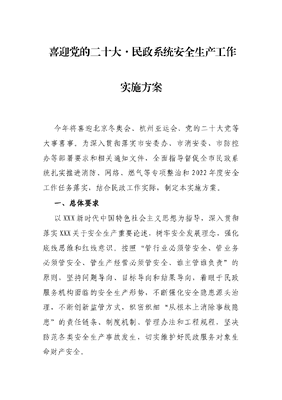 喜迎党的二十大·民政系统安全生产工作实施方案.docx