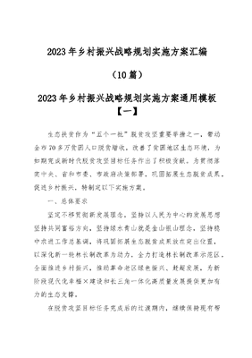 (10篇)2023年乡村振兴战略规划实施方案汇编.docx