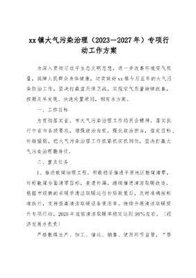 xx镇大气污染治理(2023-2027年)专项行动工作方案.docx