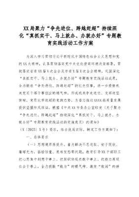 XX局聚力“争先进位、跨越赶超”持续深化“真抓实干、马上就办、办就办好”专题教育实践活动工作方案.docx
