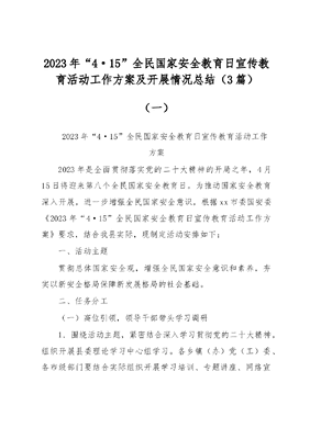 (3篇)2023年“4·15”全民国家安全教育日宣传教育活动工作方案及开展情况总结.docx