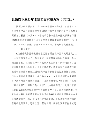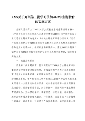 XXX关于开展第二批学习贯彻2023年主题教育的实施方案.docx