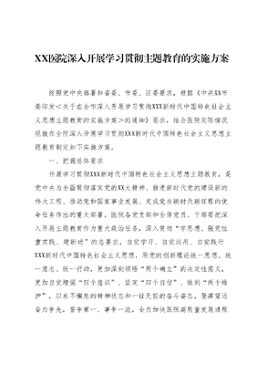 XX医院深入开展学习贯彻主题教育的实施方案.docx