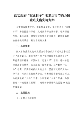 落实政府“过紧日子”要求厉行节约力保重点支出实施方案.docx